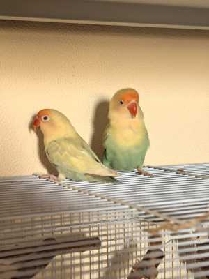 Готовая пара неразлучников Фишера в редком окрасе. 2 года Активные, невероятно любвеобильные, постоянно спариваются.